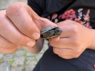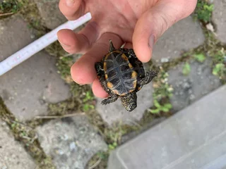 Das Wiederansiedlungsprojekt „Europäische Sumpfschildkröte“ im FFH-Gebiet Kühkopf-Knoblochsaue läuft erfolgreich! Nahe bei Leeheim im Kreis Groß-Gerau wurde gestern ein kleiner Schlüpfling gefunden.